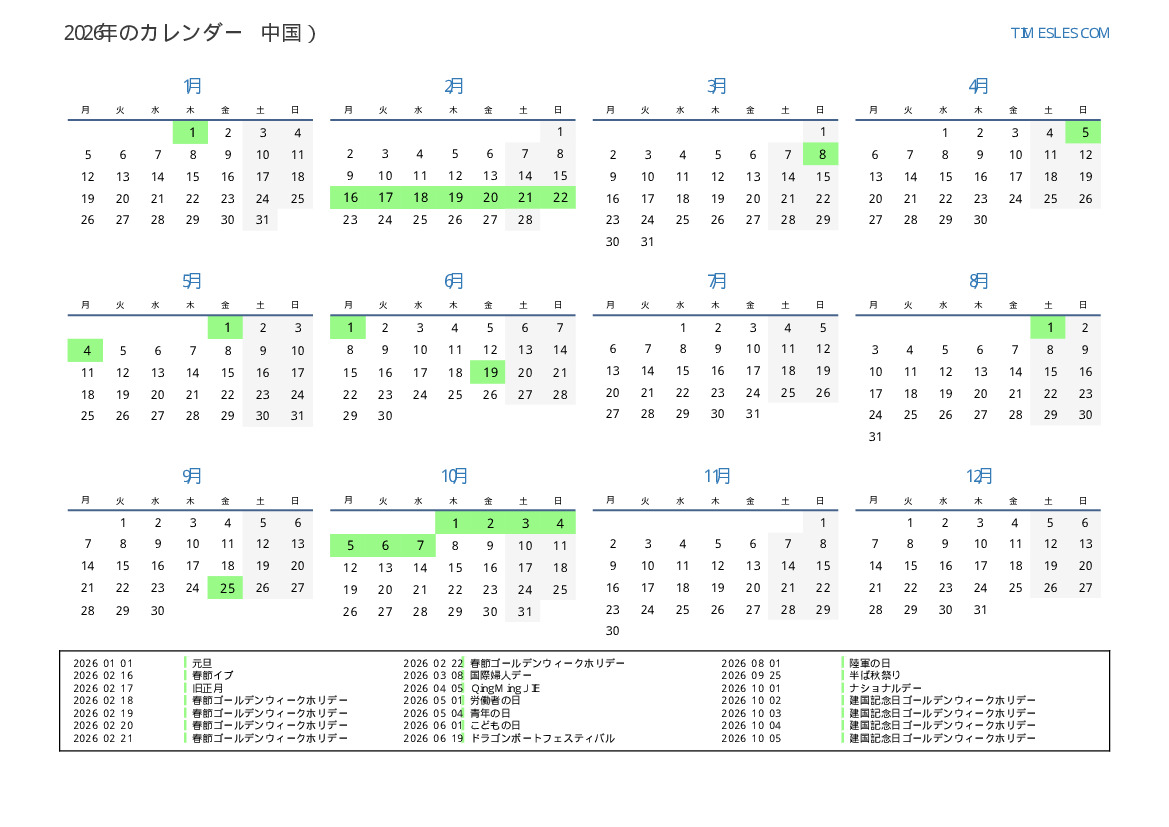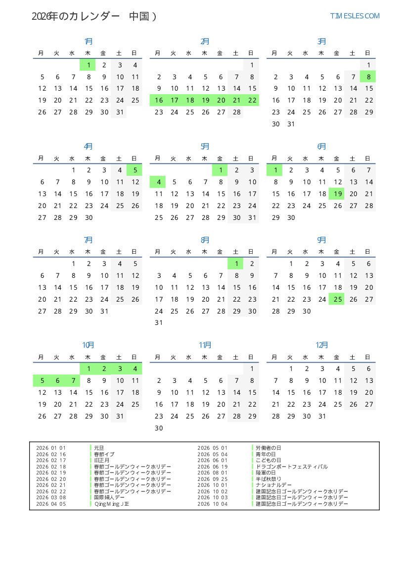 2026/10/04 建国記念日ゴールデンウィークホリデー