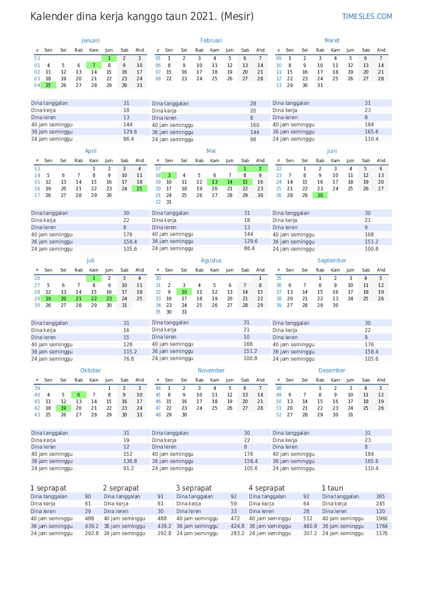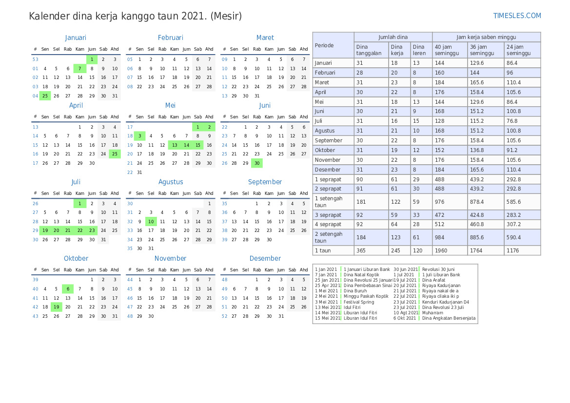 Download lan nyithak tanggalan dina bisnis PDF kanthi preinan lan akhir minggu kanggo kuartal 3 taun 2021 kanggo Mesir