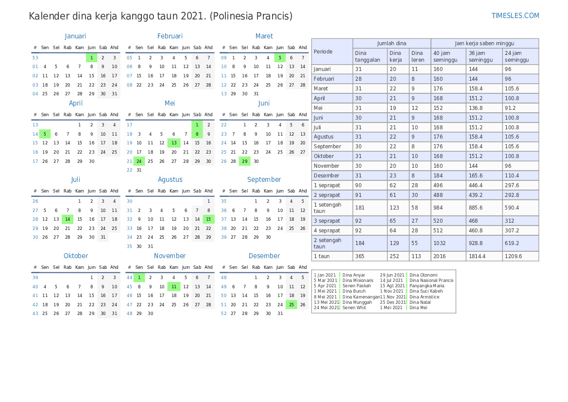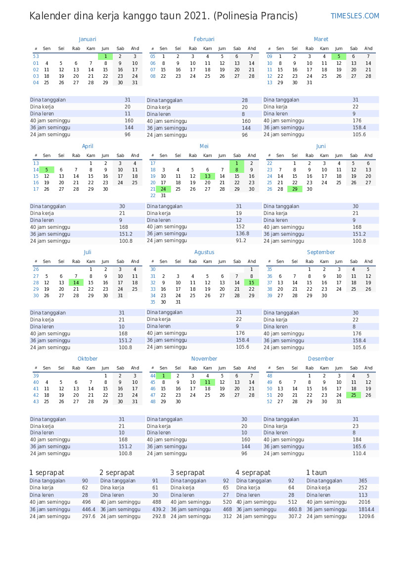Kalender kuartal kaping 4 2021 kanggo Polinesia Prancis