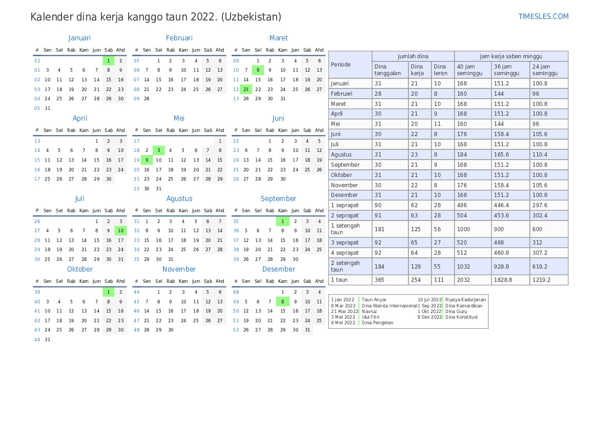 | Dina kerja | 22 |