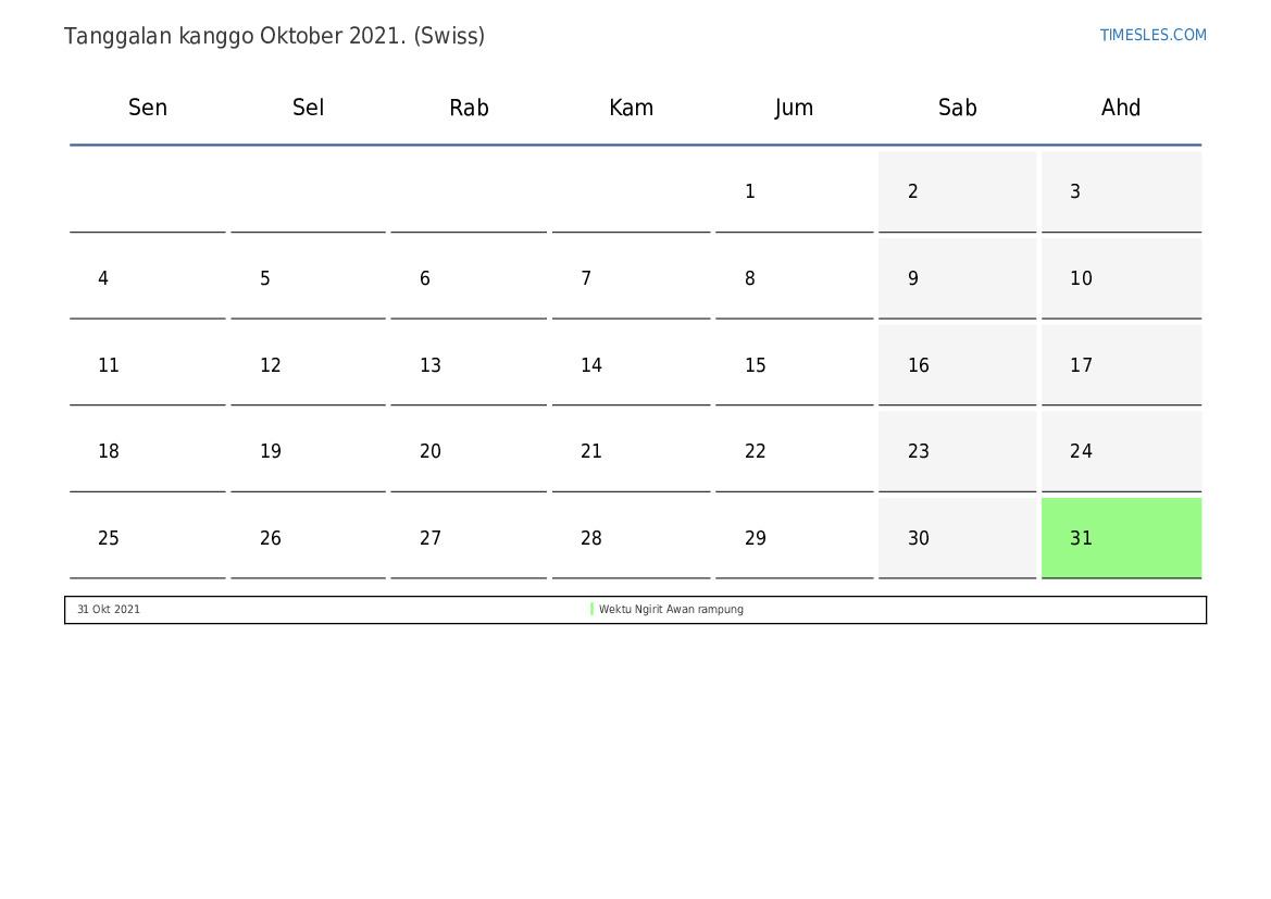 Tanggalan Oktober 2021 kanggo Swiss