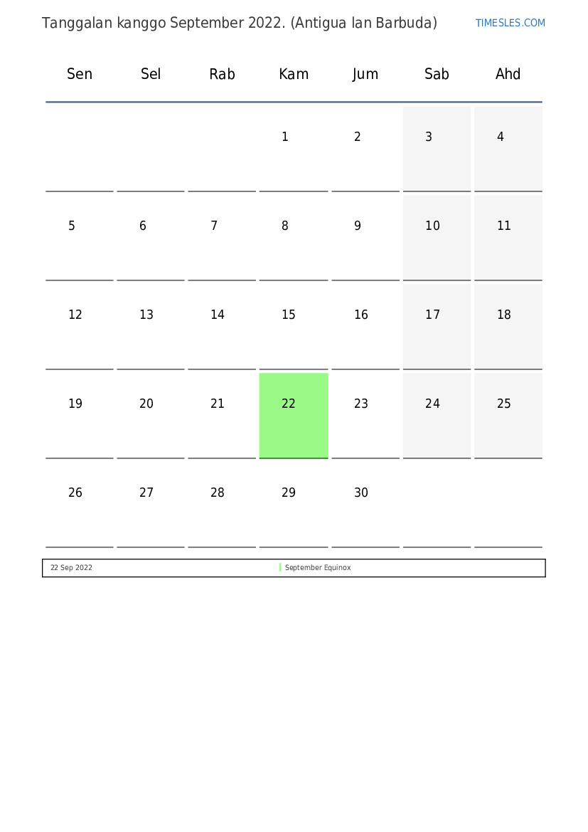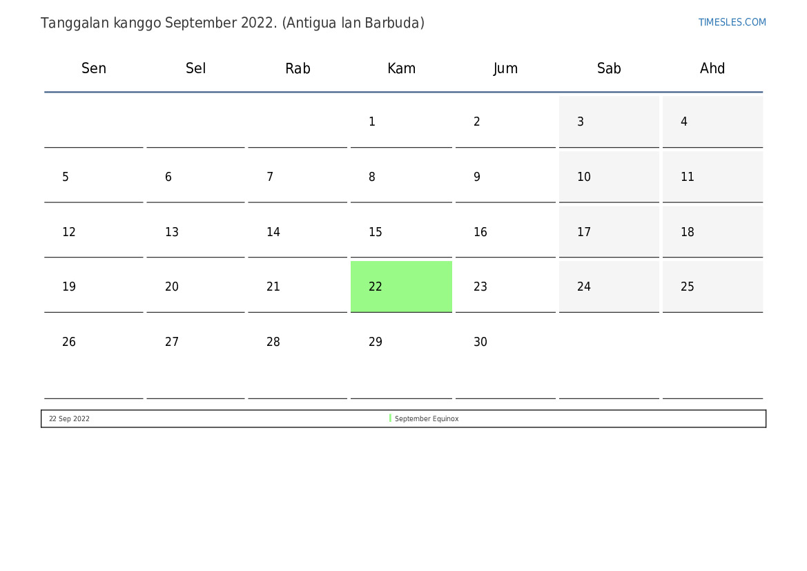 Tanggalan September 2022 kanggo Antigua lan Barbuda