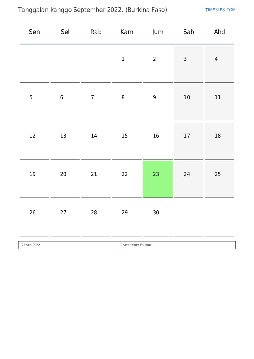 Tanggalan September 2022 kanggo Burkina Faso