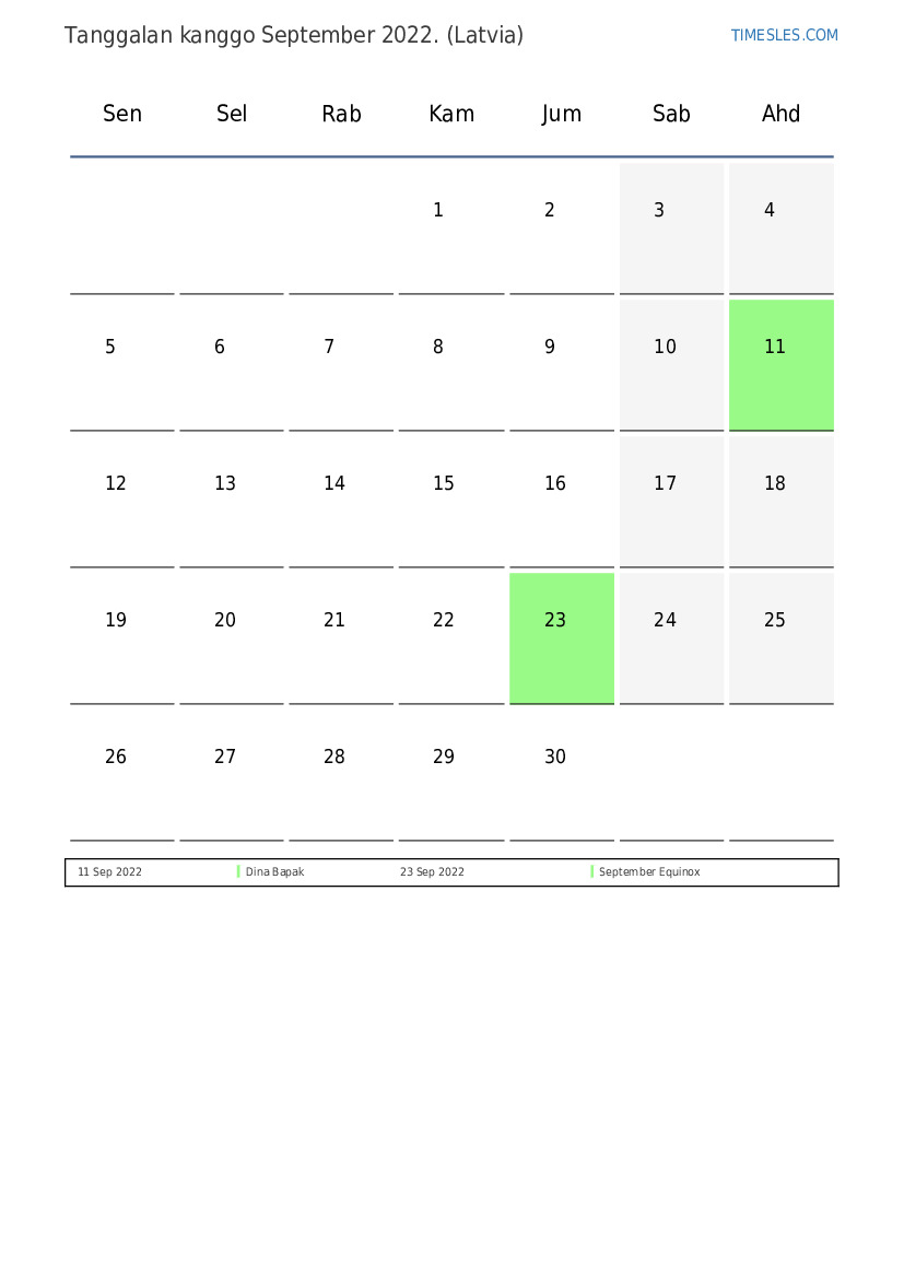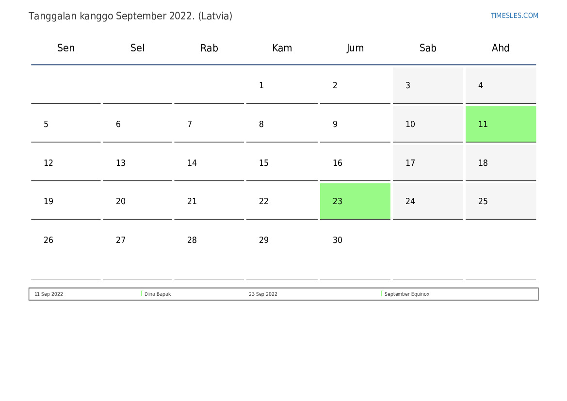 Tanggalan September 2022 kanggo Latvia
