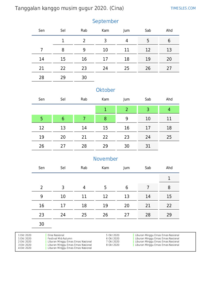 3 Okt 2020 Liburan Minggu Emas Emas Nasional