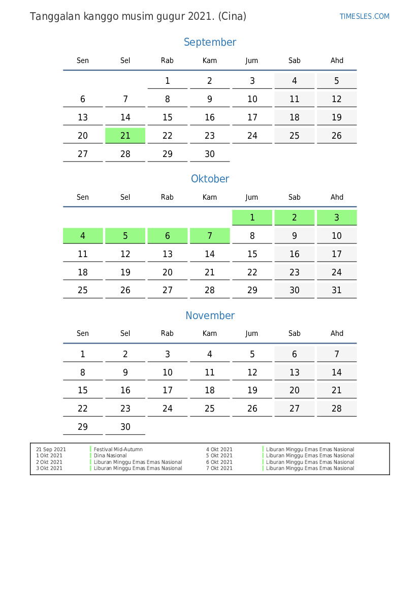 3 Okt 2021 Liburan Minggu Emas Emas Nasional