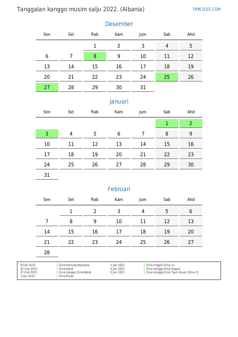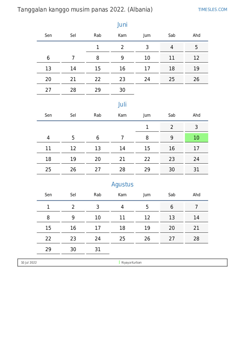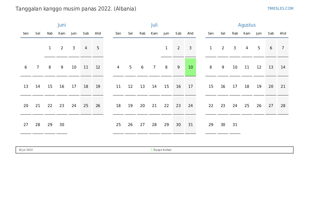 Download lan nyithak tanggalan PDF kanthi preinan lan akhir minggu kanggo musim panas taun 2022 kanggo Albania