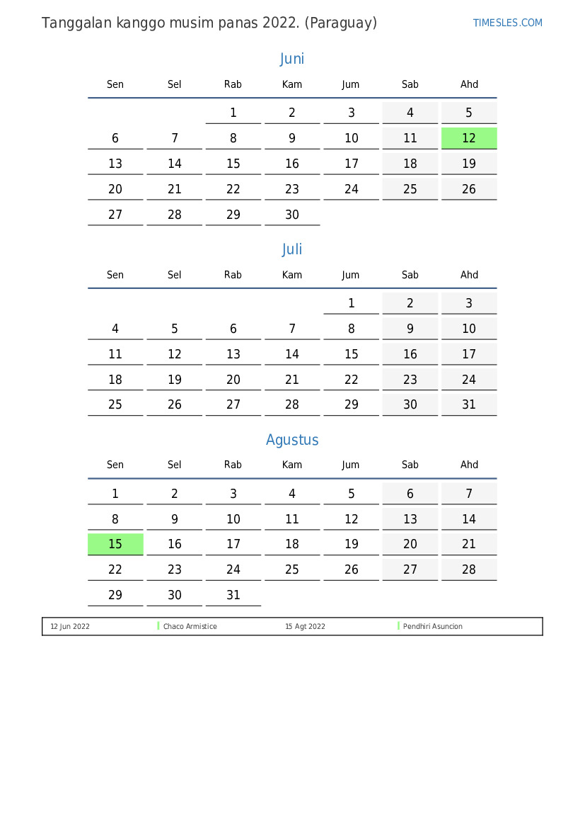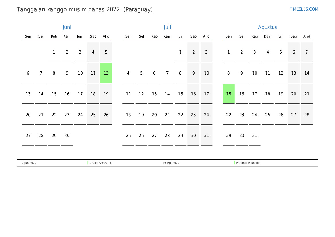 Ing mangsa panas 2022, ana 3 preinan lan dina dina ing Paraguay. Panas 2022 diwiwiti dina Rebo lan rampung dina Rebo.