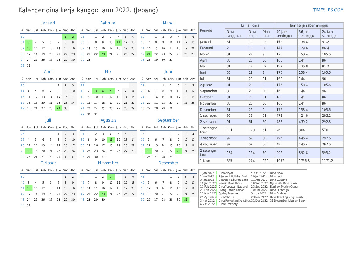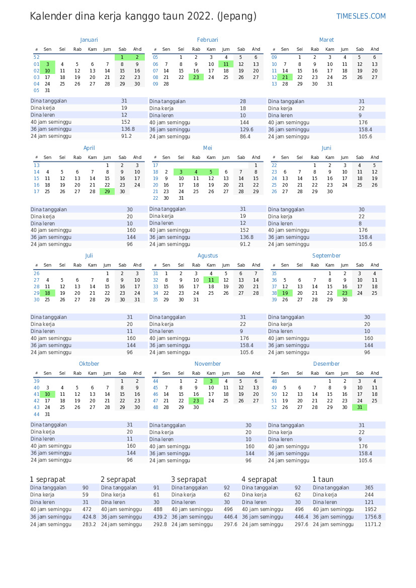 | Dina kerja | 22 |