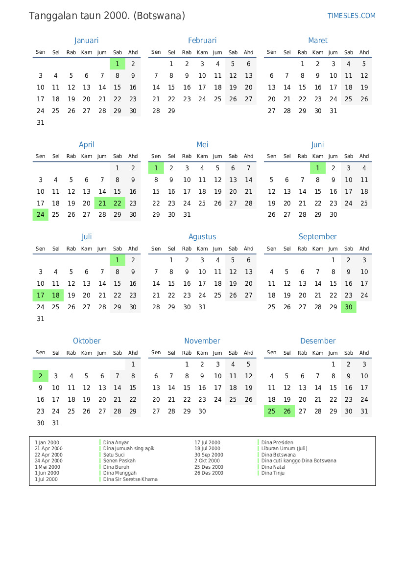 2 Okt 2000 Dina cuti kanggo Dina Botswana