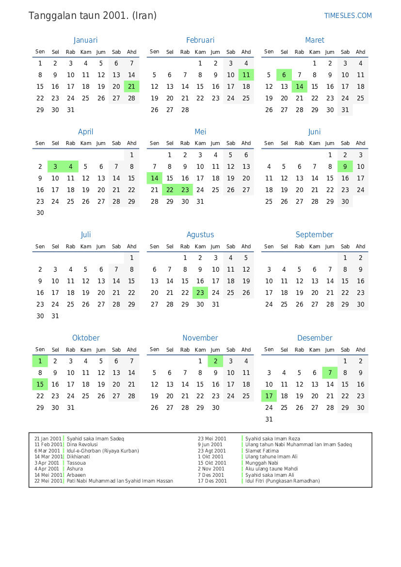 9 Jun 2001 Ulang tahun Nabi Muhammad lan Imam Sadeq