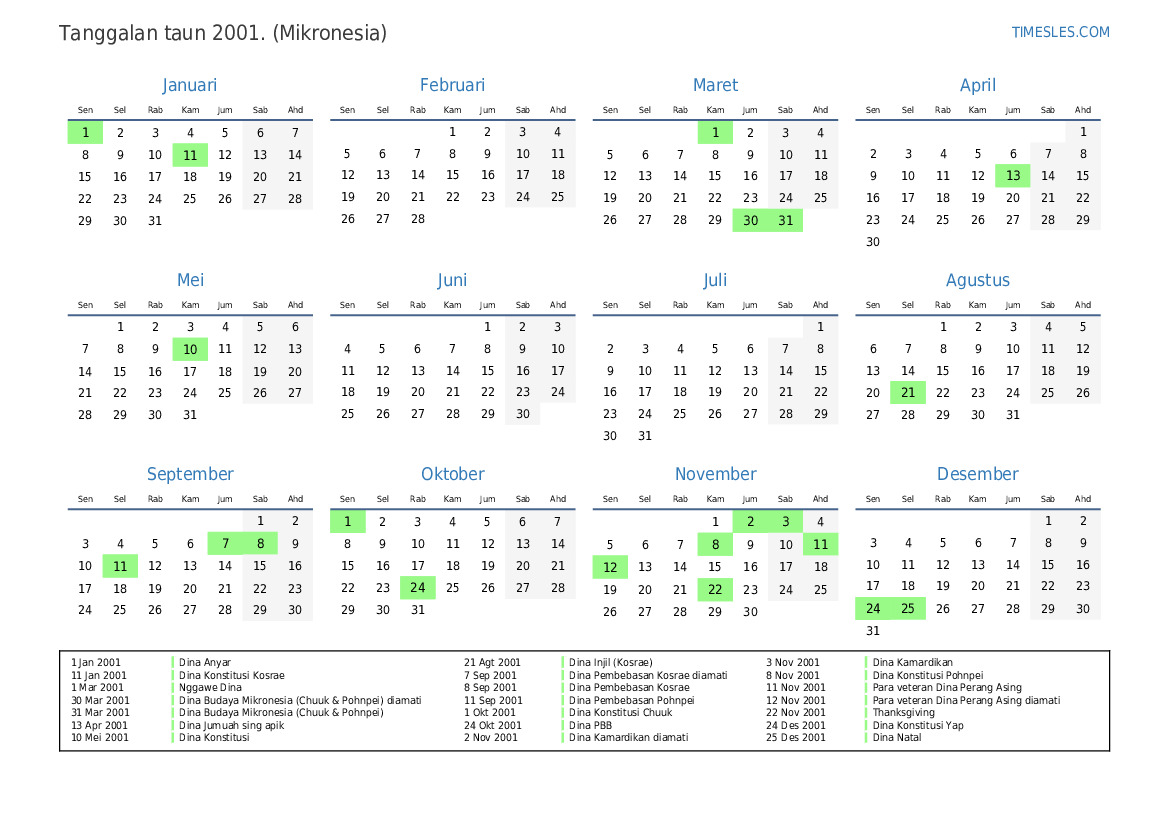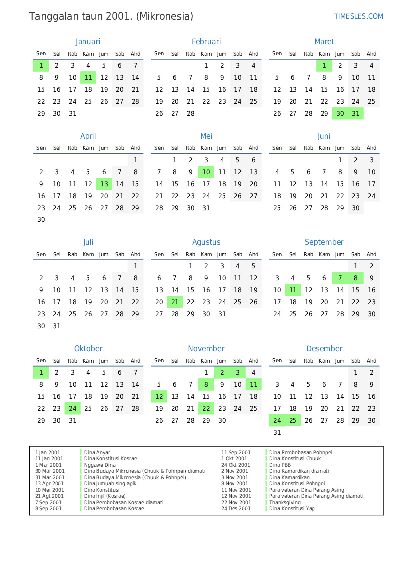 7 Sep 2001 Dina Pembebasan Kosrae diamati