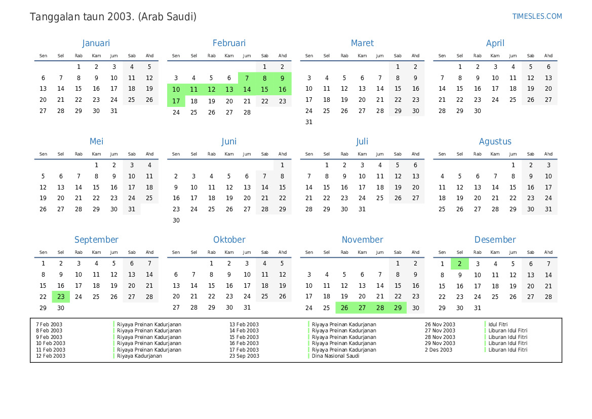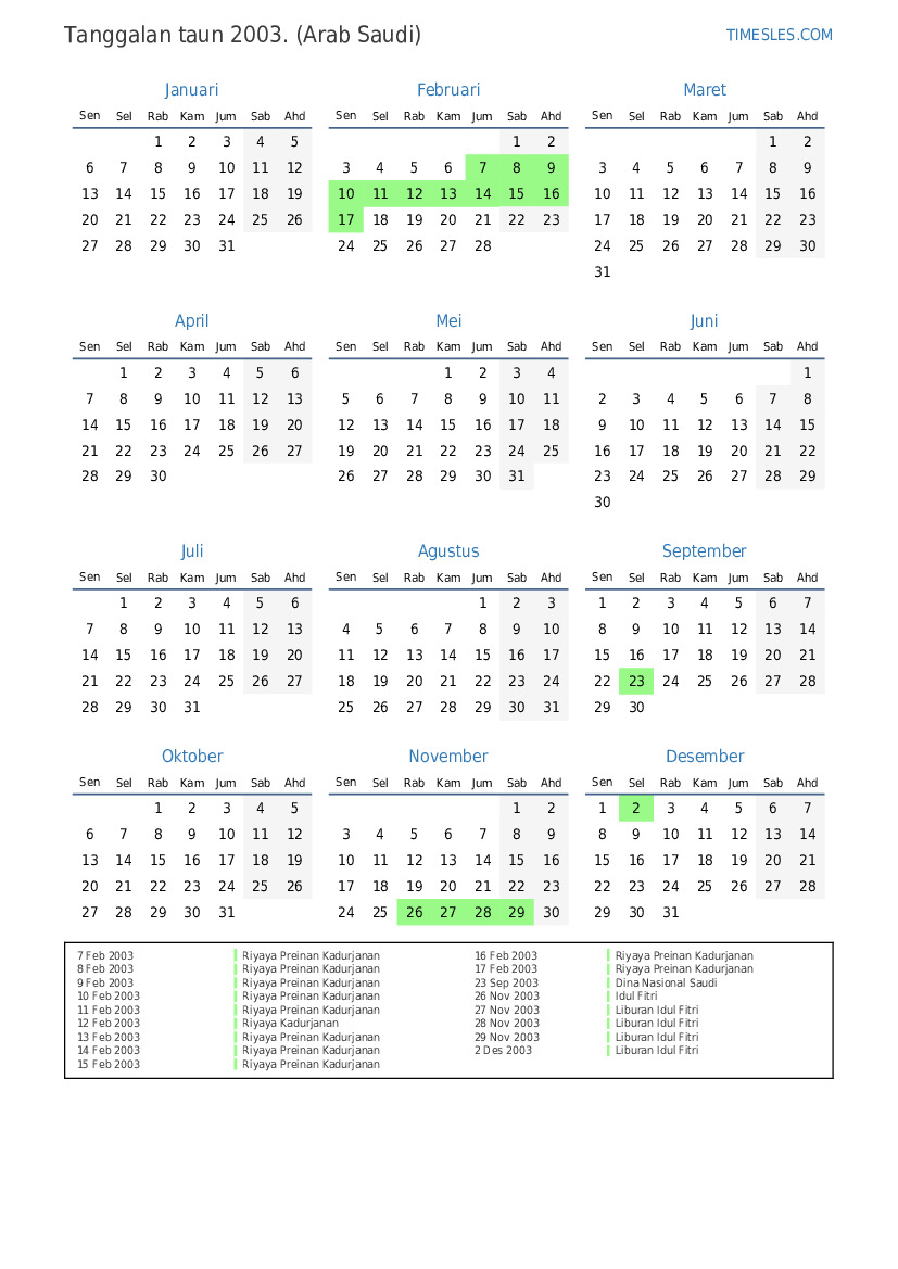 30 Nov 2003 Liburan Idul Fitri (mung sektor publik)