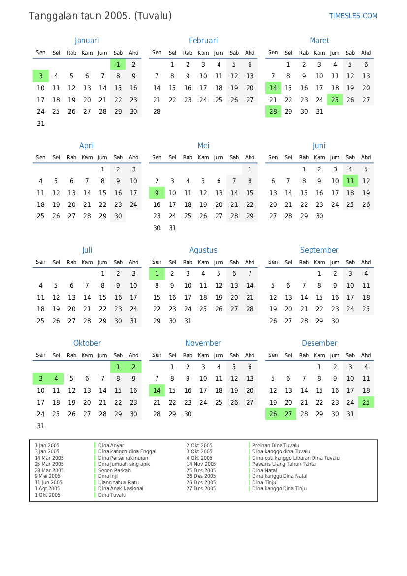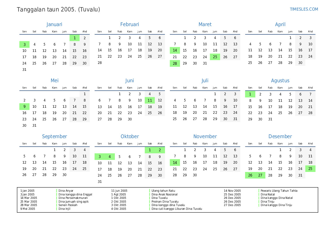 4 Okt 2005 Dina cuti kanggo Liburan Dina Tuvalu