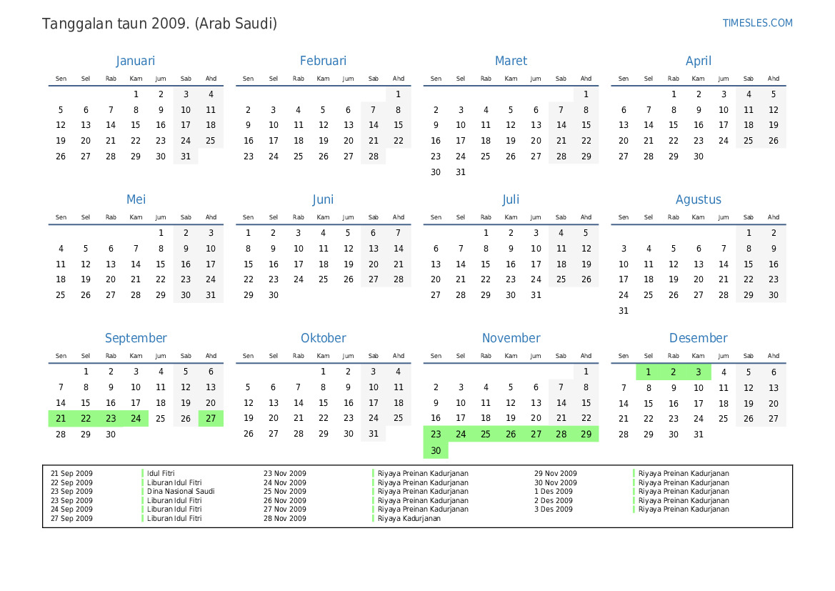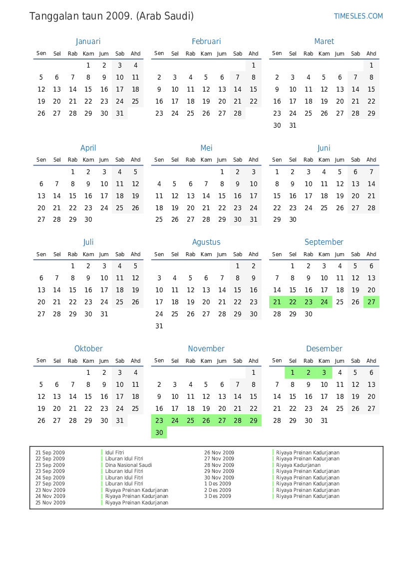 25 Sep 2009 Liburan Idul Fitri (mung sektor publik)