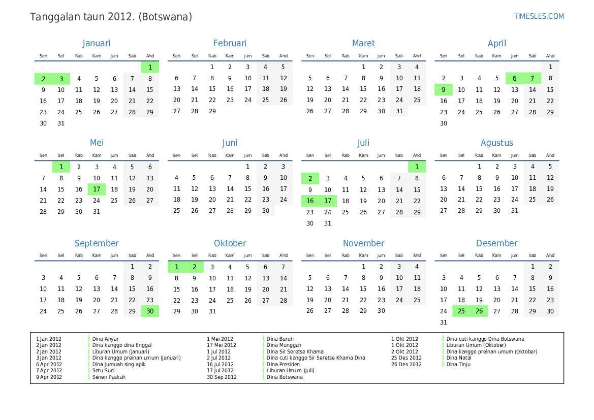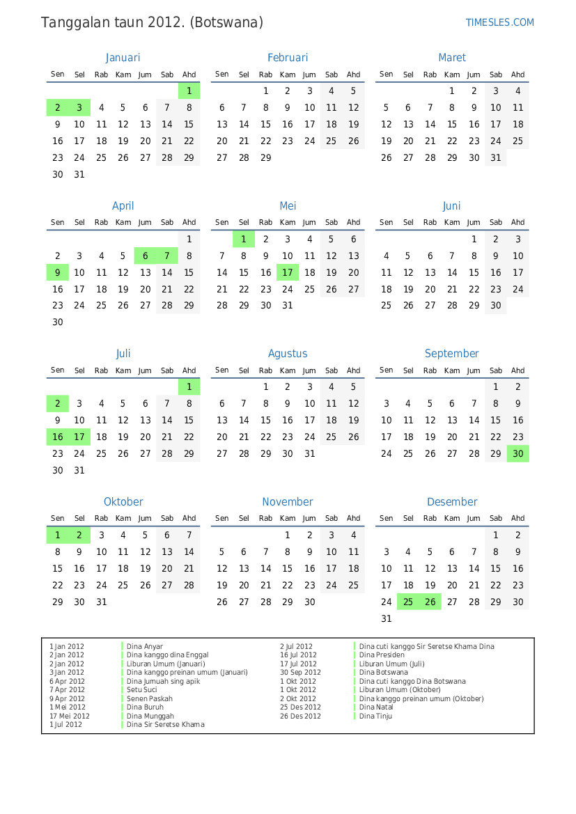 1 Okt 2012 Dina cuti kanggo Dina Botswana