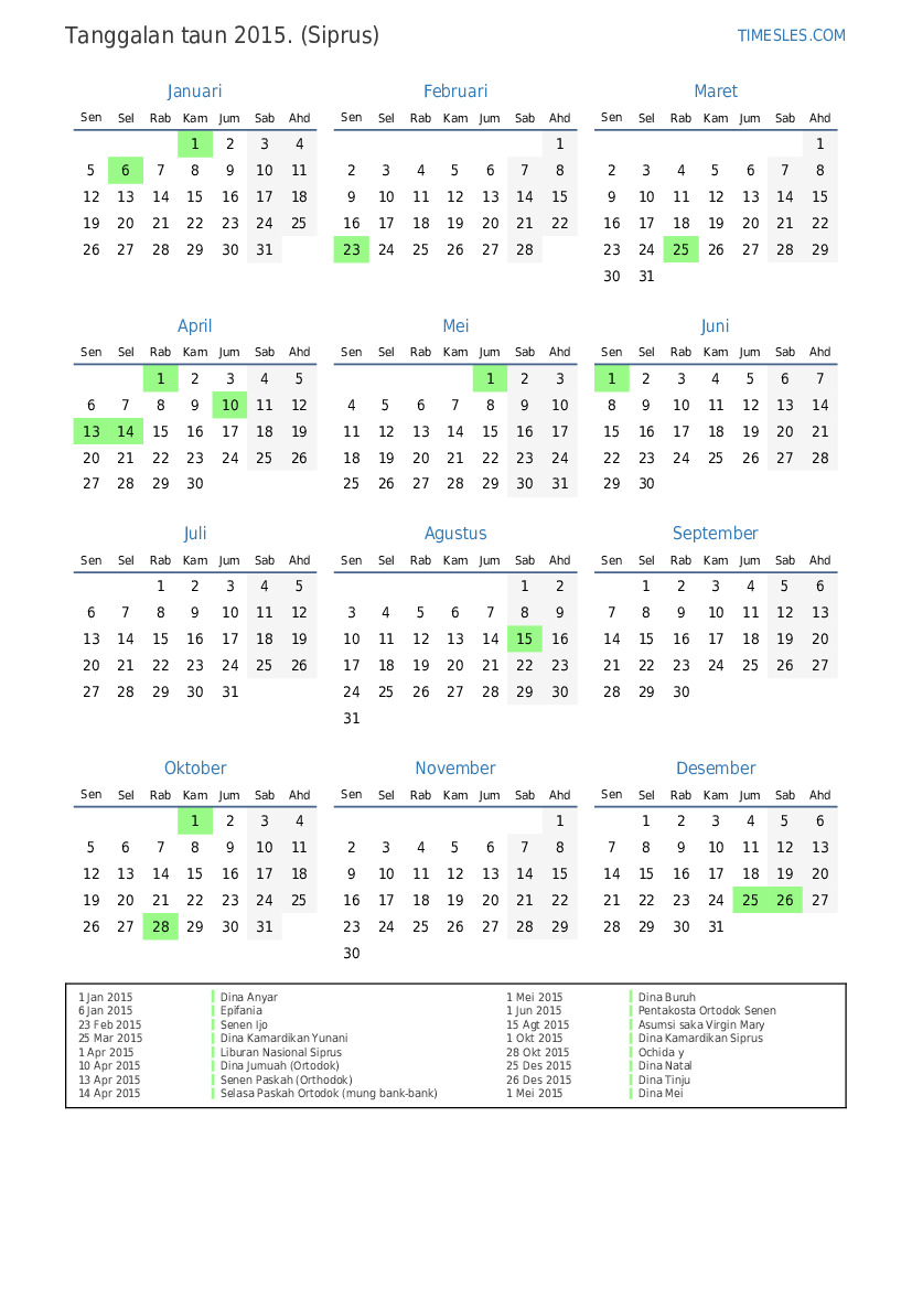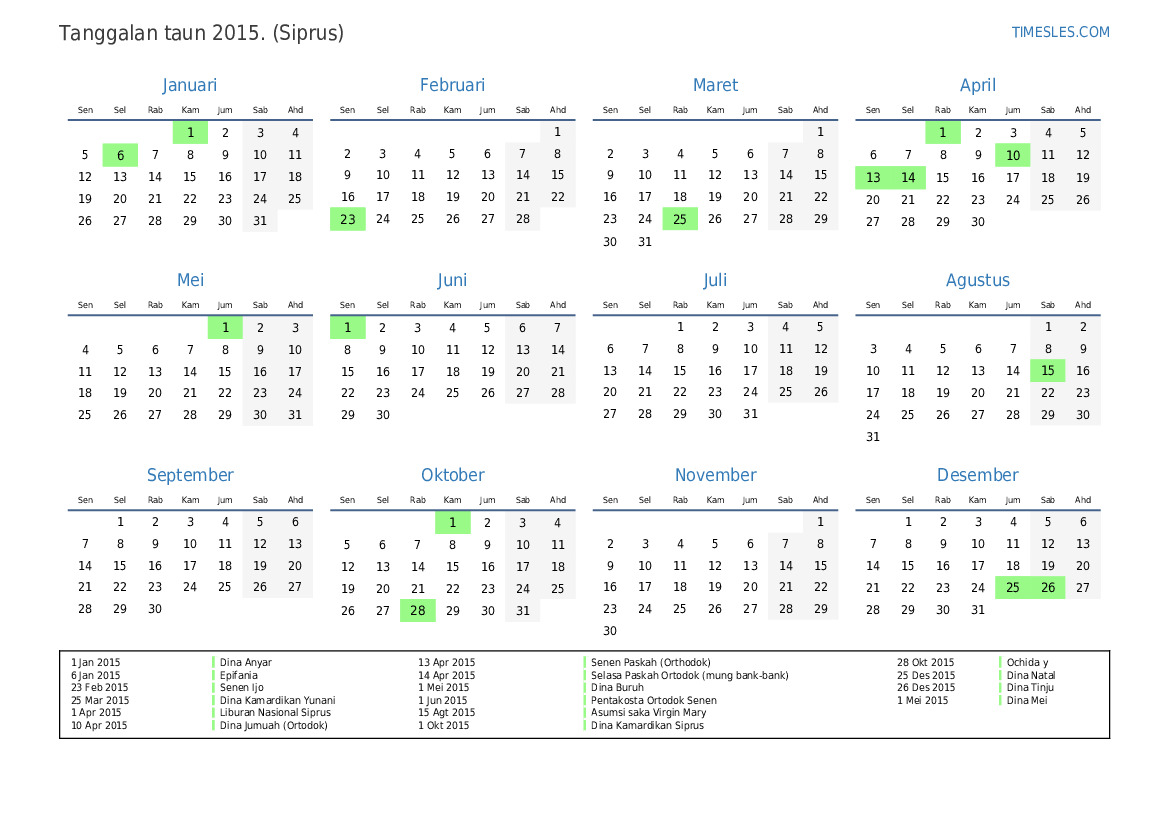 1 Apr 2015 Liburan Nasional Siprus
