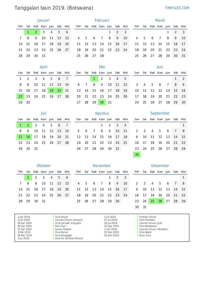 2 Jan 2019 Liburan Umum (Januari)