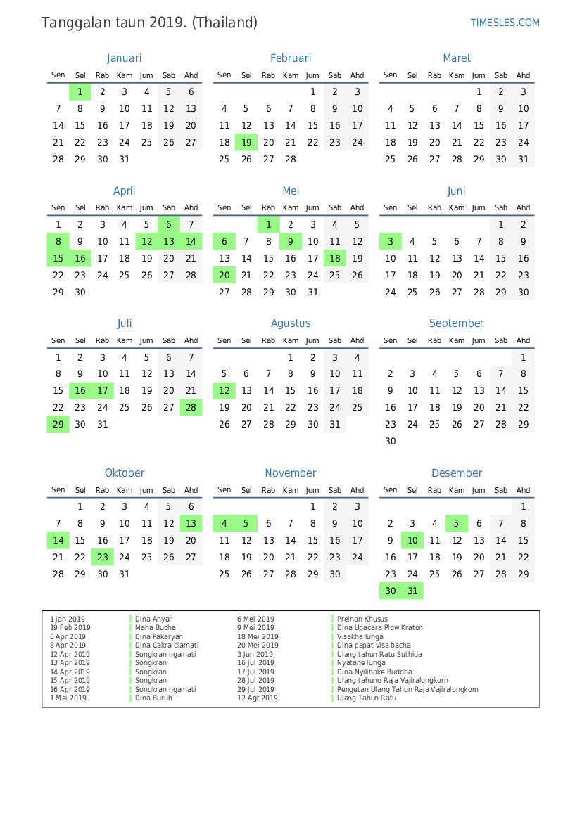 30 Des 2019 Liburan Umum Khusus Taun Baru