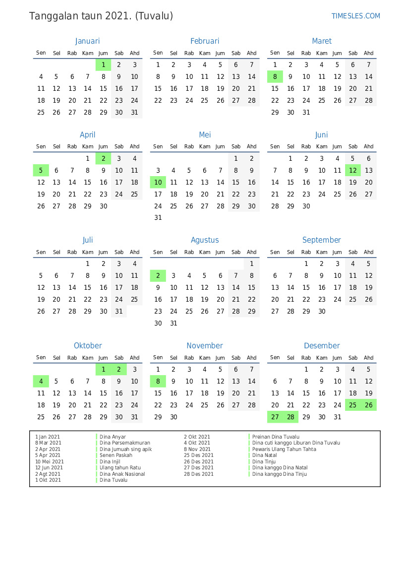 4 Okt 2021 Dina cuti kanggo Liburan Dina Tuvalu