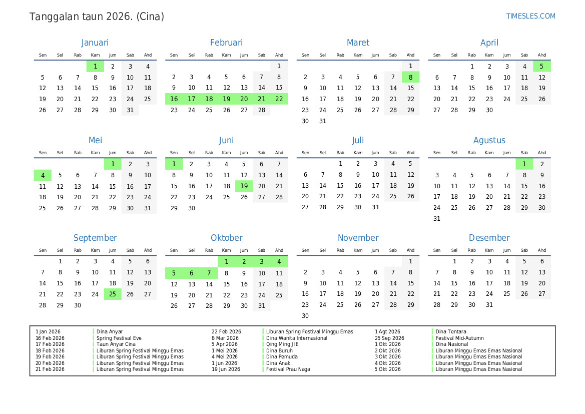 22 Feb 2026 Liburan Spring Festival Minggu Emas