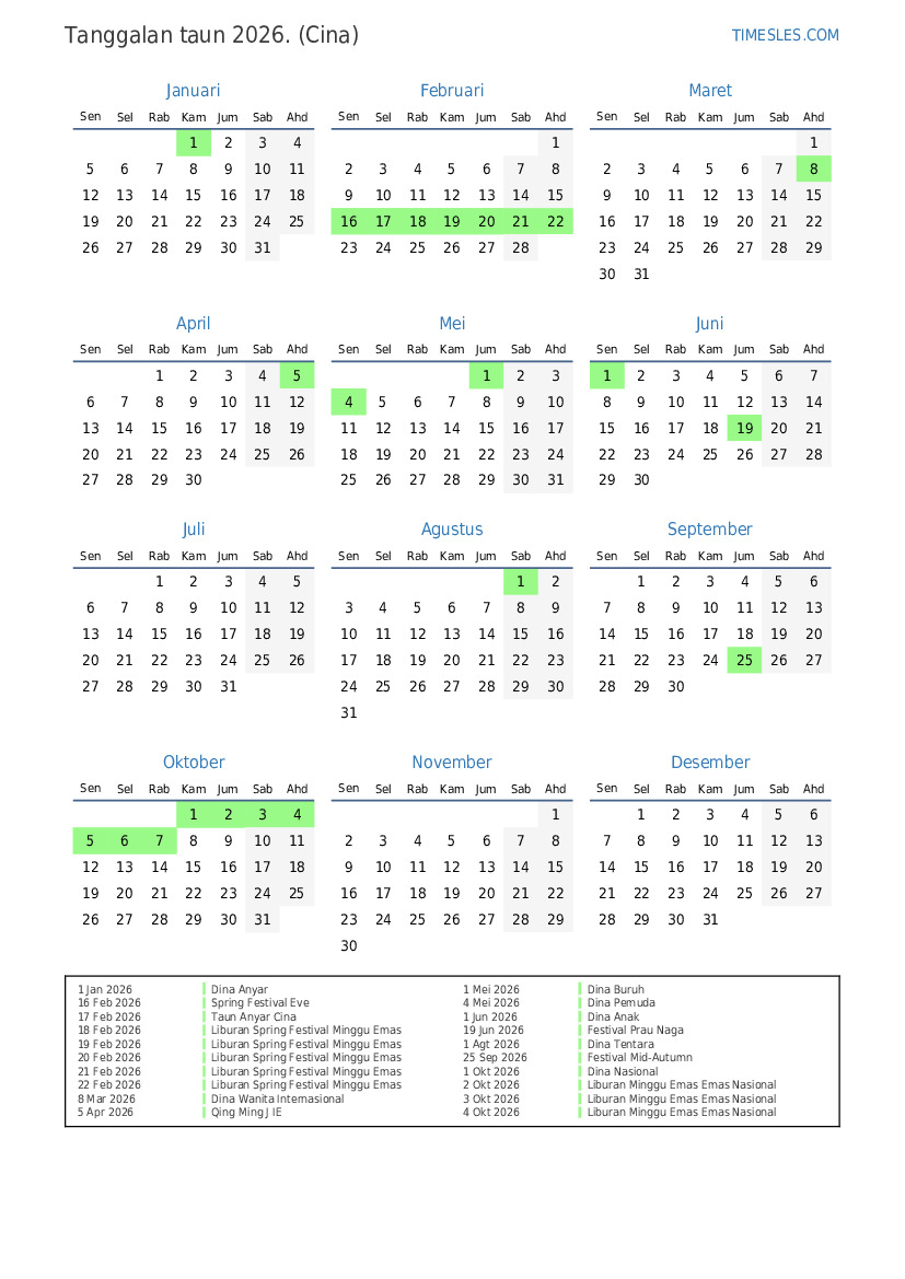 18 Feb 2026 Liburan Spring Festival Minggu Emas