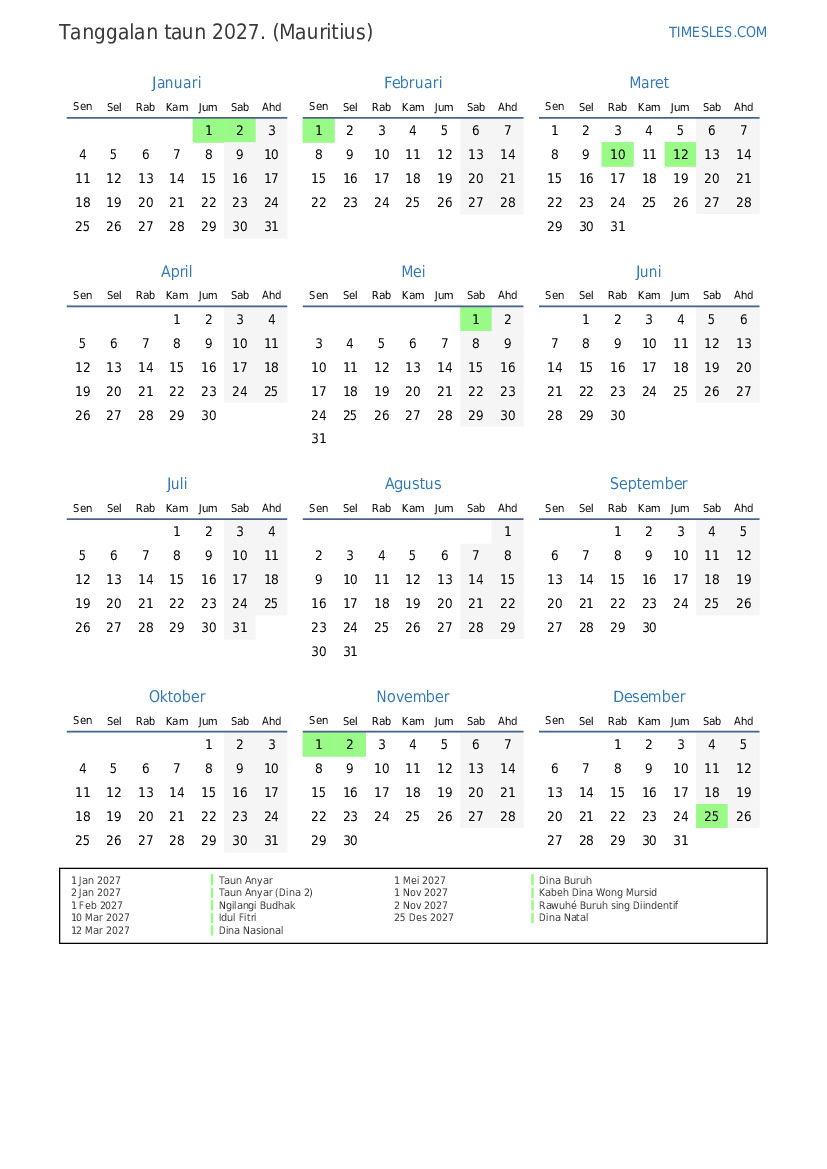 1 Nov 2027 Kabeh Dina Wong Mursid