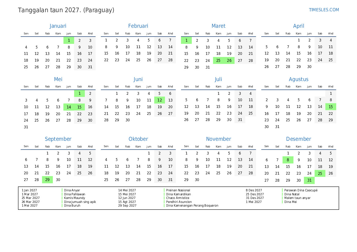 15 Agt 2027 Pendhiri Asuncion