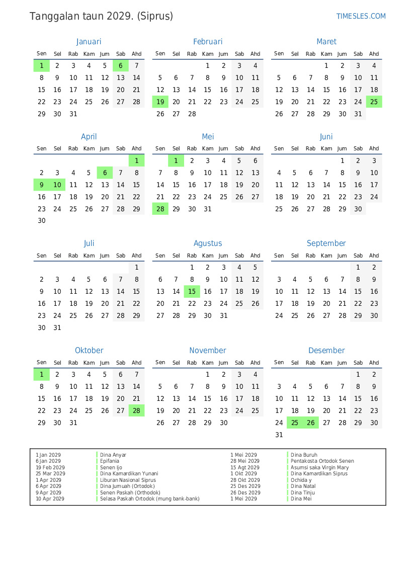10 Apr 2029 Selasa Paskah Ortodok (mung bank-bank)