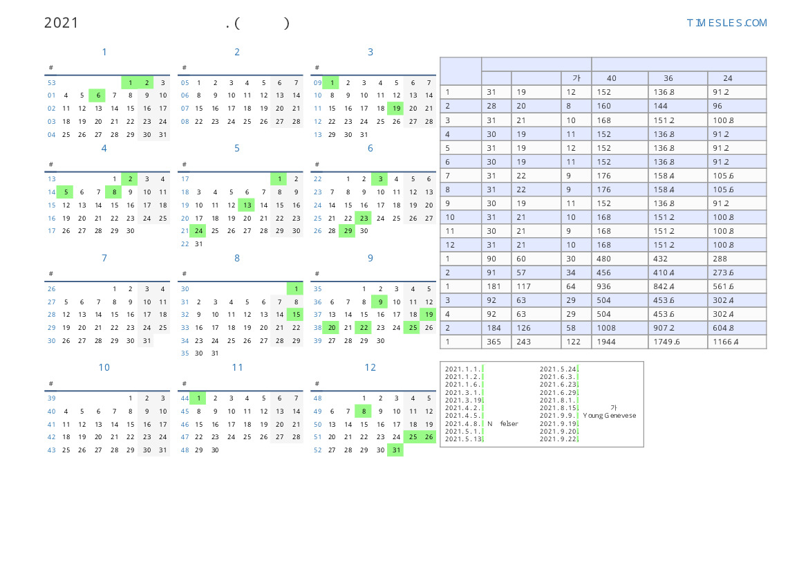 스위스 2021 년 2 분기 공휴일 및 주말이 포함 된 PDF 영업일 캘린더 다운로드 및 인쇄