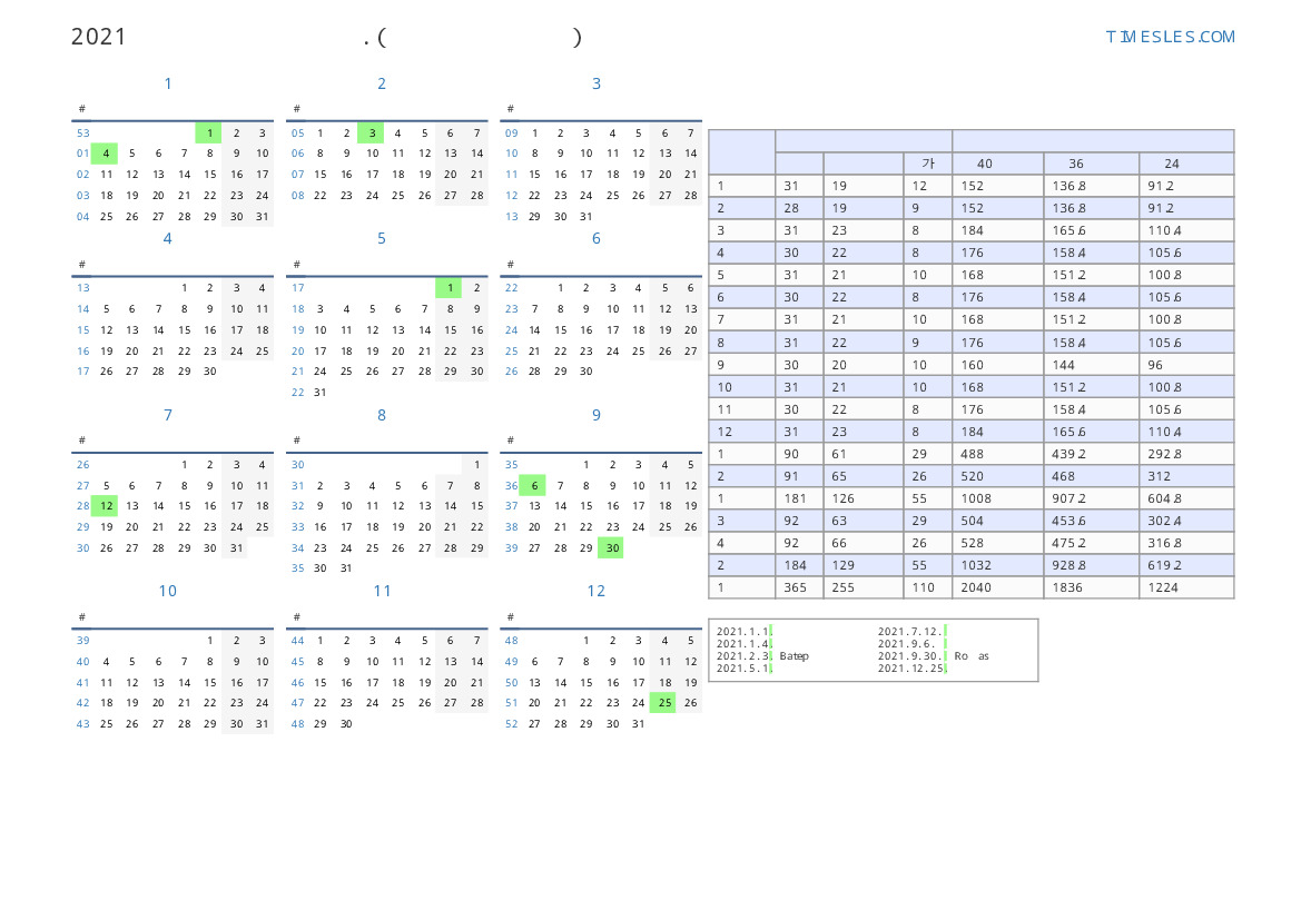 상투 메 프린시 페 2021 년 3 분기 휴일 및 주말이 포함 된 영업일 달력
