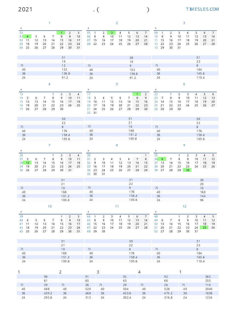 상투 메 프린시 페를위한 3 분기 달력 2021
