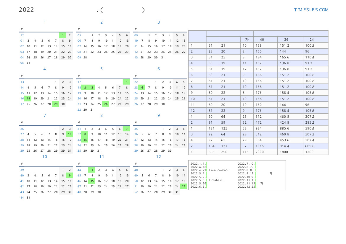 코트 디부 아르 2022 년 1 분기 공휴일 및 주말이 포함 된 PDF 영업일 캘린더 다운로드 및 인쇄