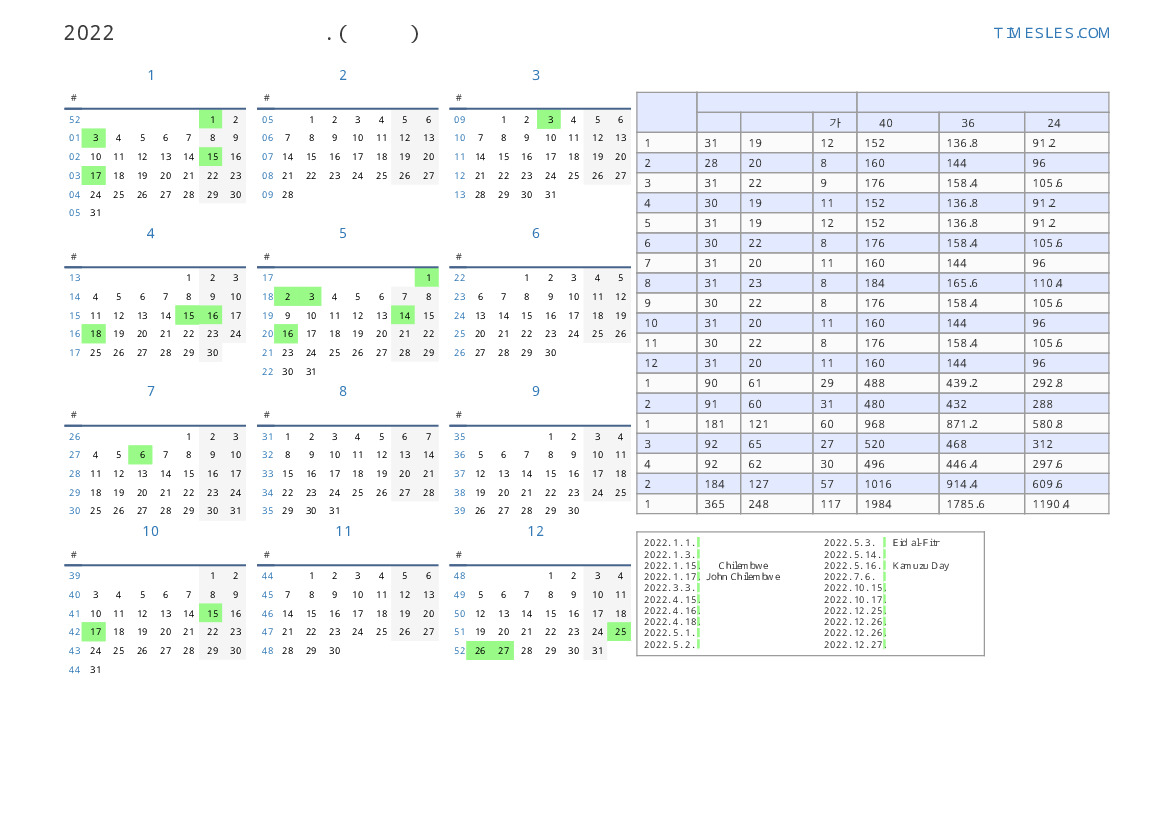 말라위 2022 년 2 분기 공휴일 및 주말이 포함 된 PDF 영업일 캘린더 다운로드 및 인쇄