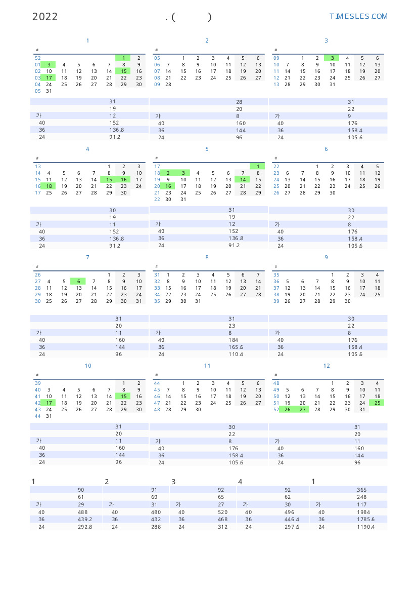 말라위 2022 년 2 분기 휴일 및 주말이 포함 된 영업일 달력