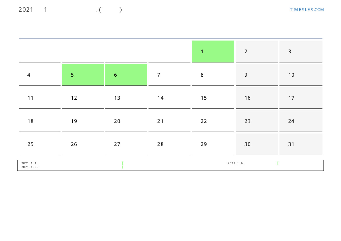 스웨덴 2021 년 1월 월 공휴일 및 주말 달력