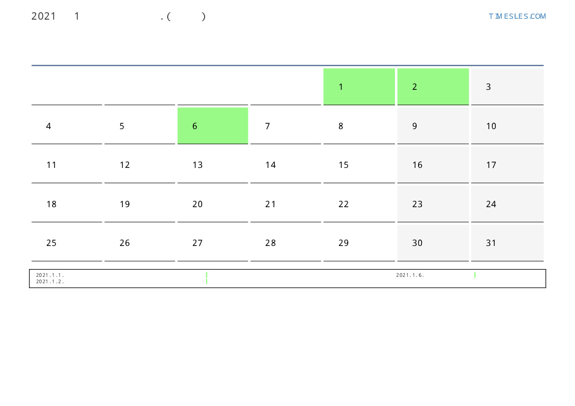 스위스 2021 년 1월 월 공휴일 및 주말 달력