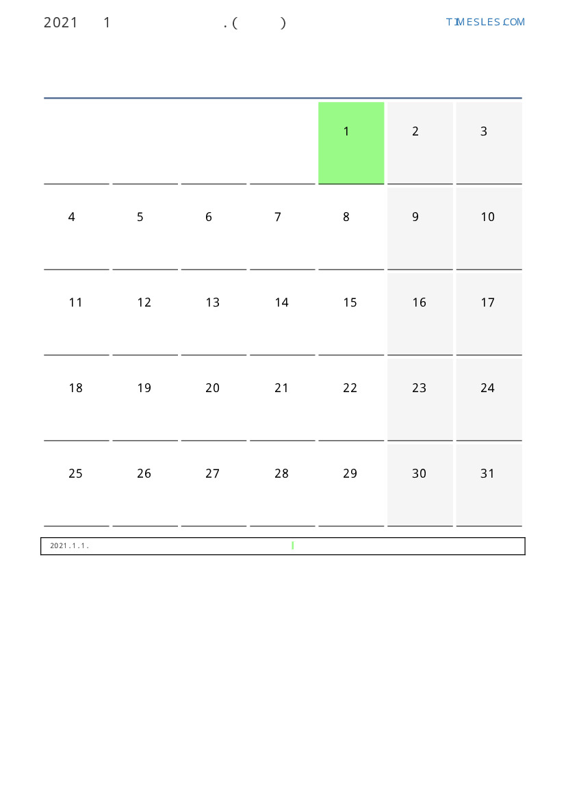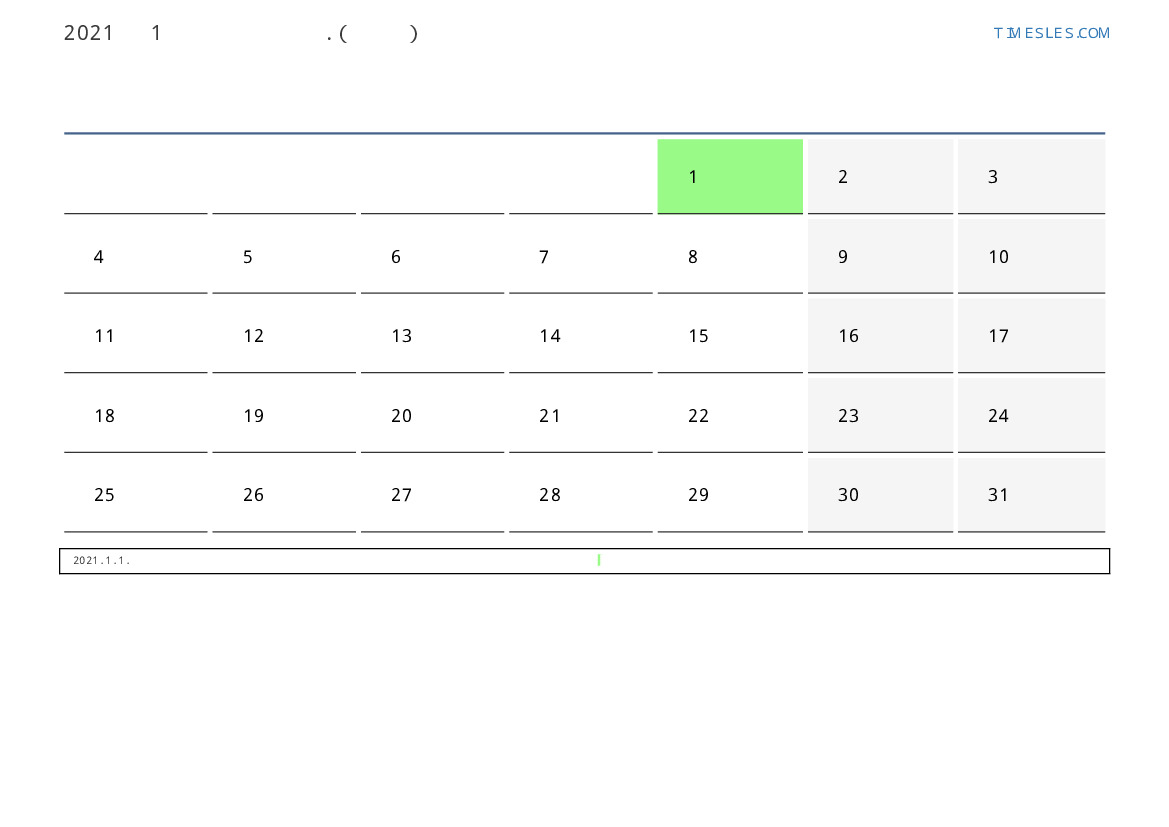투발루 용 2021 년 1월 월 공휴일 및 주말이 포함 된 PDF 캘린더 다운로드 및 인쇄