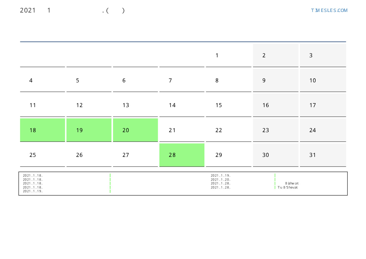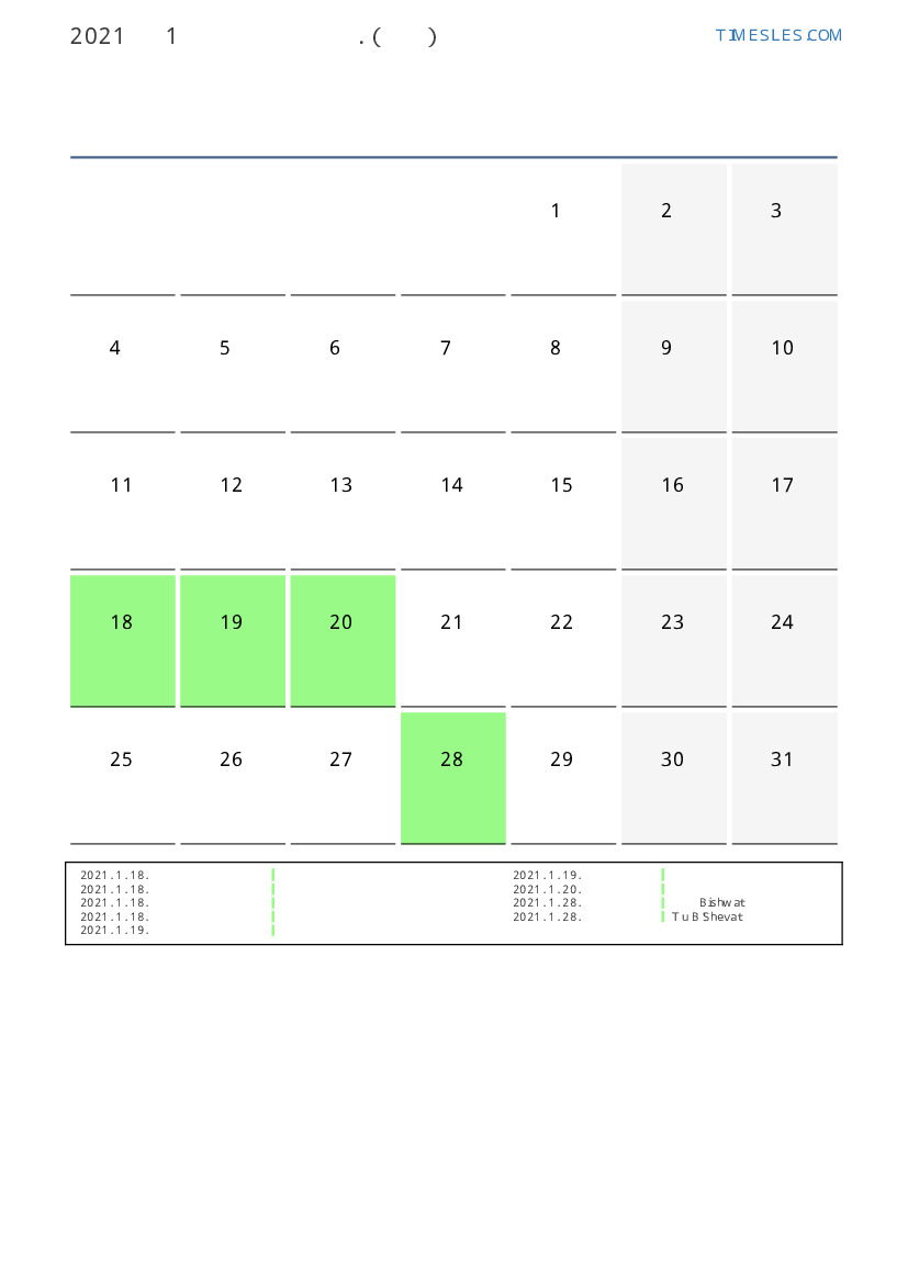 1월에는 31 일 포함됩니다. 이것은 2021 년 1 개월입니다. 올해의 계절 : 겨울. 1월 금요일에 시작하여 일요일에 끝납니다. 2021년 1월에 미국 22 공휴일 및 휴무 있습니다.