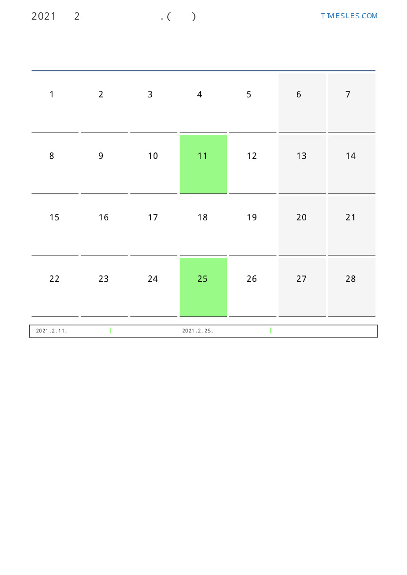 이란 용 2021 년 2월 월 공휴일 및 주말이 포함 된 PDF 캘린더 다운로드 및 인쇄