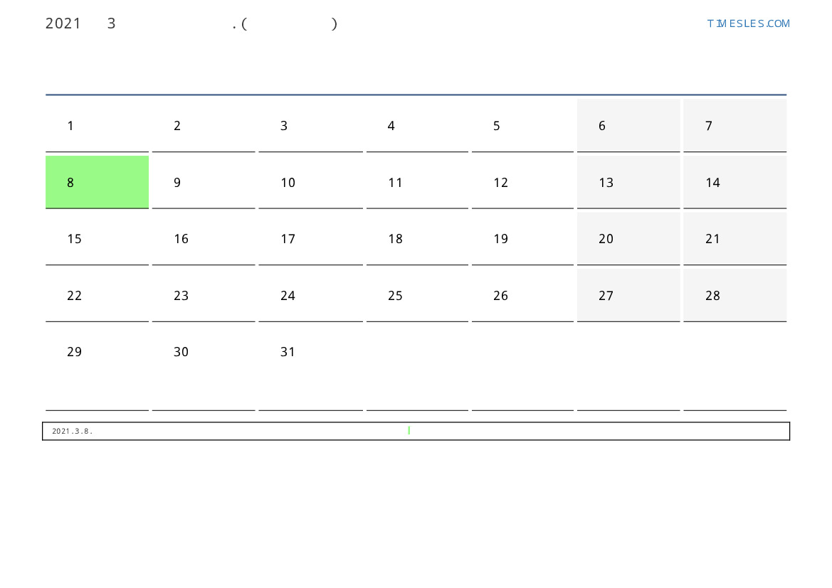 3월에는 31 일 포함됩니다. 이것은 2021 년 3 개월입니다. 올해의 계절 : 봄. 3월 월요일에 시작하여 수요일에 끝납니다. 2021년 3월에 부르 키나 파소 2 공휴일 및 휴무 있습니다.