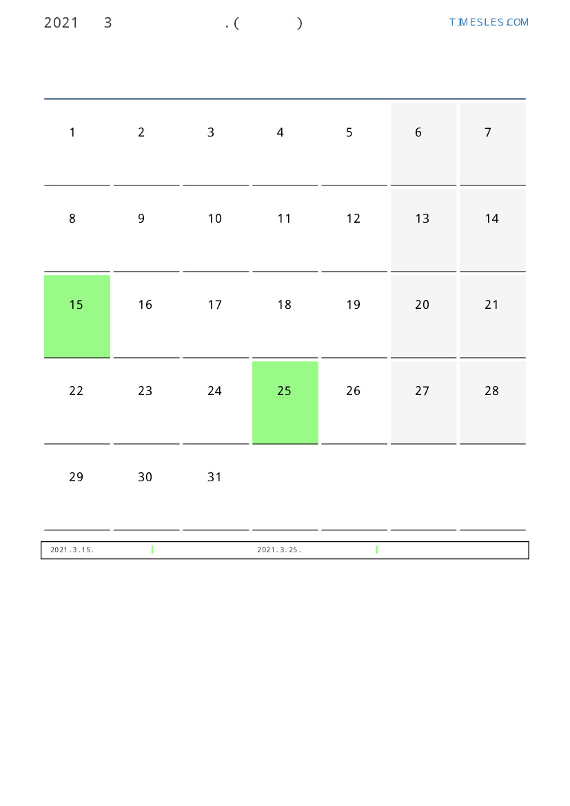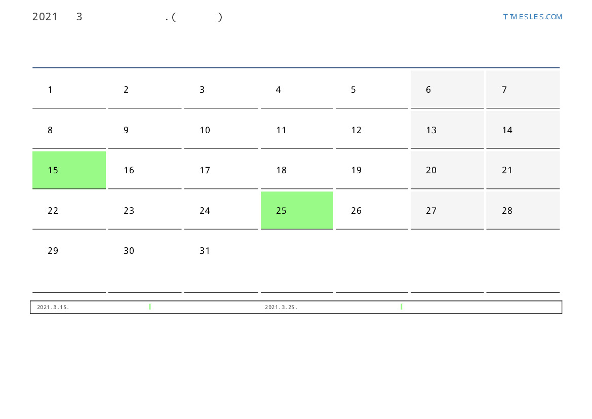 3월에는 31 일 포함됩니다. 이것은 2021 년 3 개월입니다. 올해의 계절 : 봄. 3월 월요일에 시작하여 수요일에 끝납니다. 2021년 3월에 키프로스 4 공휴일 및 휴무 있습니다.
