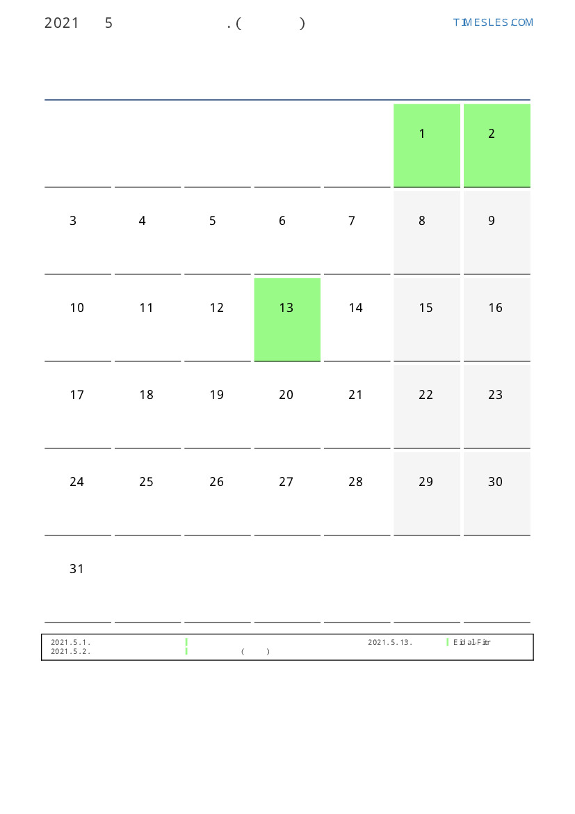 5월에는 31 일 포함됩니다. 이것은 2021 년 5 개월입니다. 올해의 계절 : 봄. 5월 토요일에 시작하여 월요일에 끝납니다. 2021년 5월에 알바니 5 공휴일 및 휴무 있습니다.