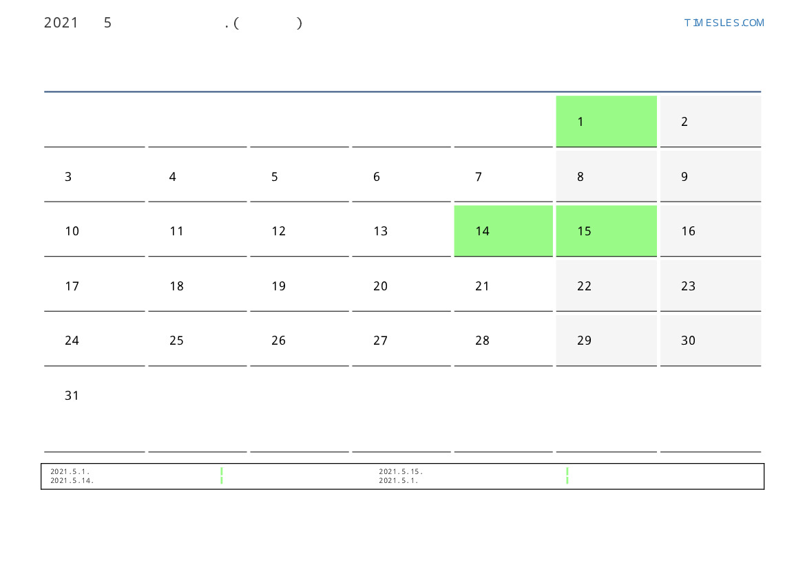 파라과이 2021 년 5월 월 공휴일 및 주말 달력
