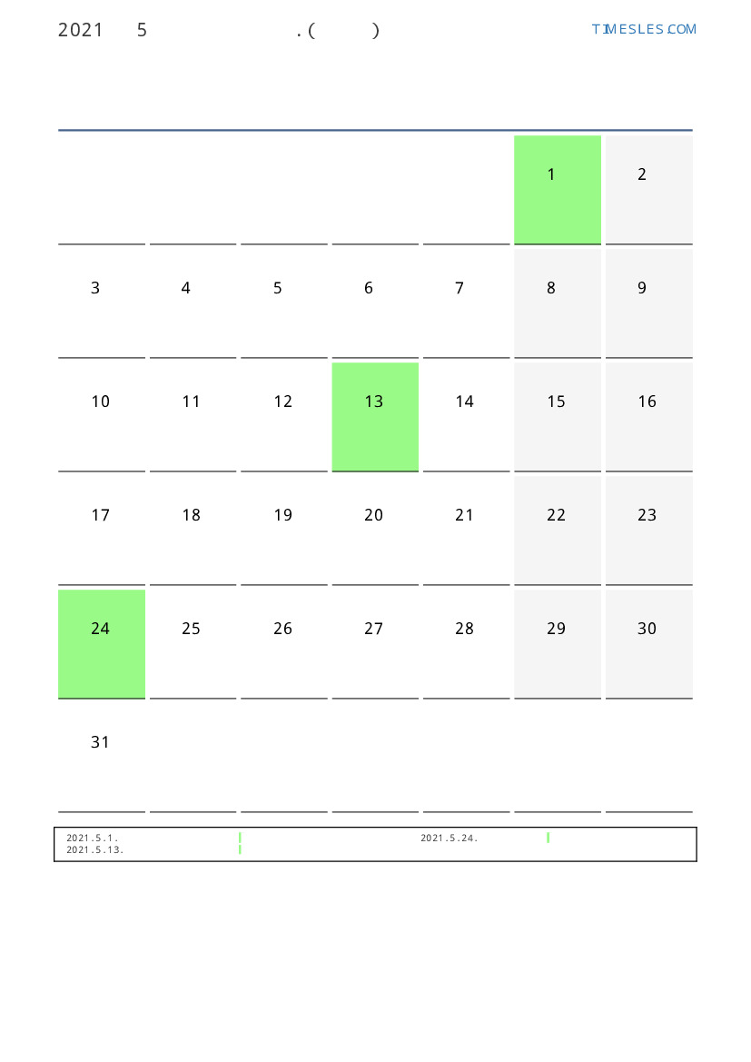 스위스 2021 년 5월 월 공휴일 및 주말 달력