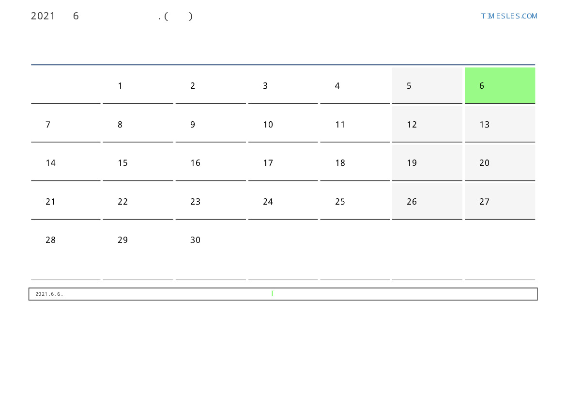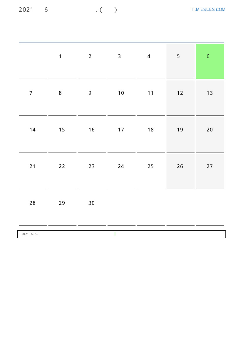 이란 용 2021 년 6월 월 공휴일 및 주말이 포함 된 PDF 캘린더 다운로드 및 인쇄