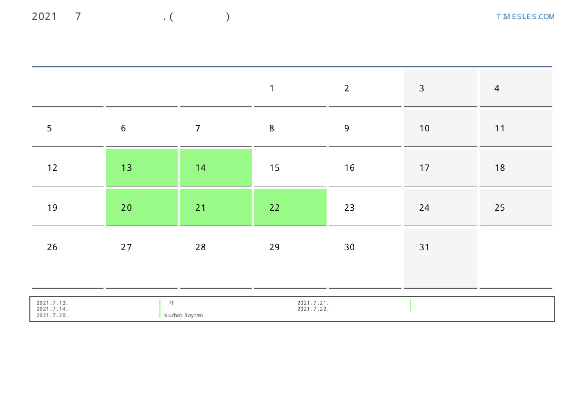 2021. 7. 14. 국정 일 휴일