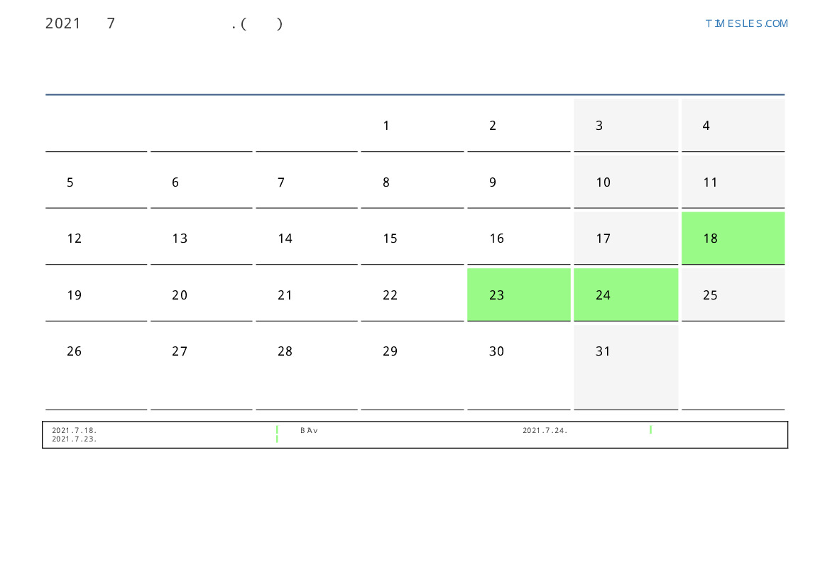 미국 2021 년 7월 월 공휴일 및 주말 달력