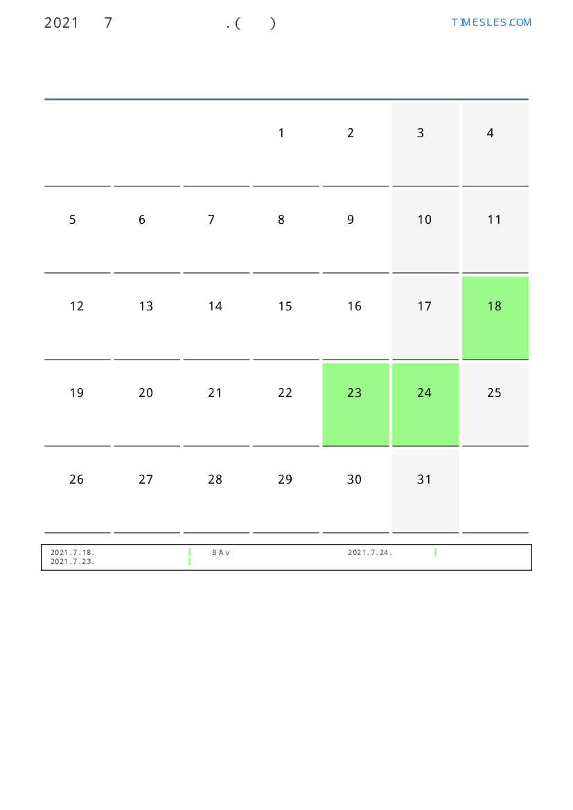 7월에는 31 일 포함됩니다. 이것은 2021 년 7 개월입니다. 올해의 계절 : 여름. 7월 목요일에 시작하여 토요일에 끝납니다. 2021년 7월에 미국 18 공휴일 및 휴무 있습니다.