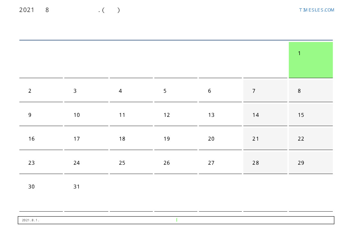중국 2021 년 8월 월 공휴일 및 주말 달력